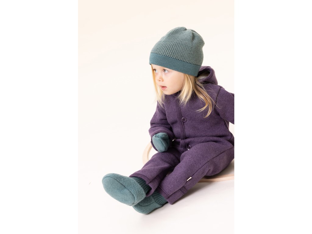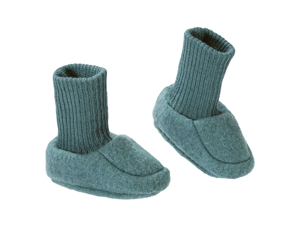 Teplé, organické, nazúvacie detské topánočky vo farbe zeleného eukalyptu od Disany vyrobené zo 100 % organickej merino vlny. Certifikované GOTS a IVN Best. Vyrobené v Nemecku.