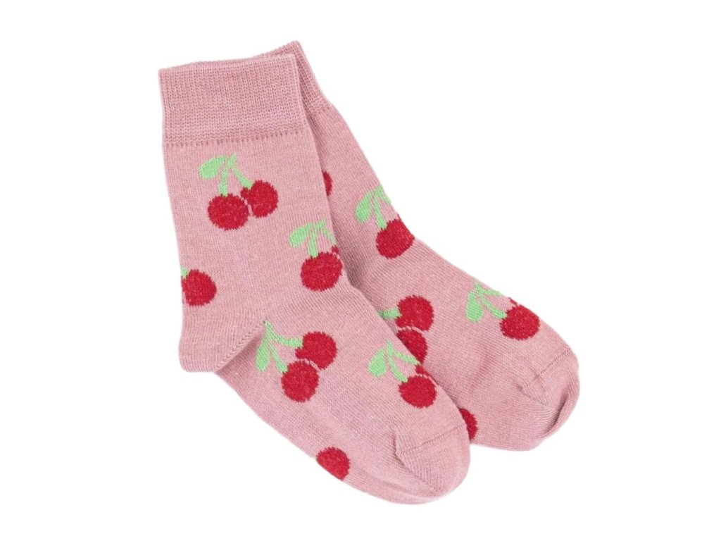 Detské ponožky - organická bavlna, certifikované GOTS. Mäkké manžety, krásny vzor čerešní, v oblasti prstov ručne zašité na zabránenie otlakom.