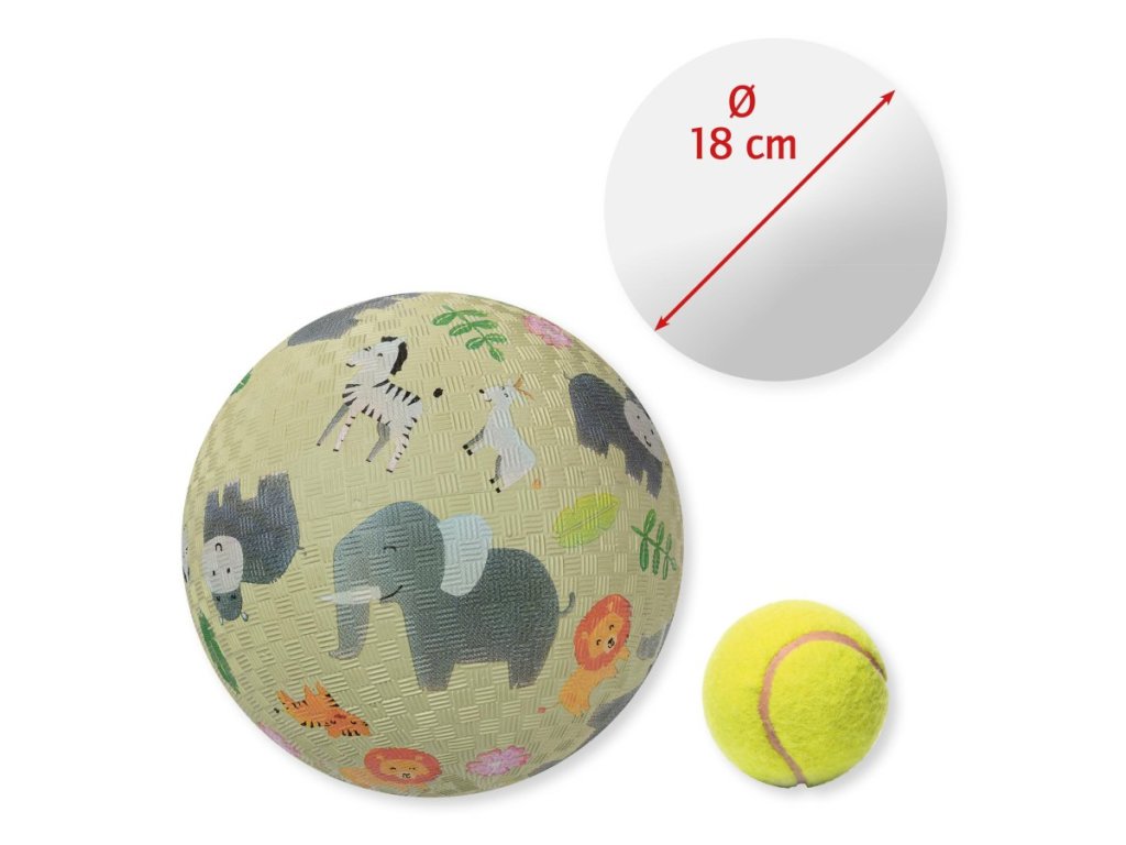 Táto lopta je vyrobená z robustného prírodného kaučuku, je obzvlášť pevná a protišmyková. S priemerom 18 cm perfektne padne do ruky a je ideálny pre akčné hry v interiéri aj exteriéri.